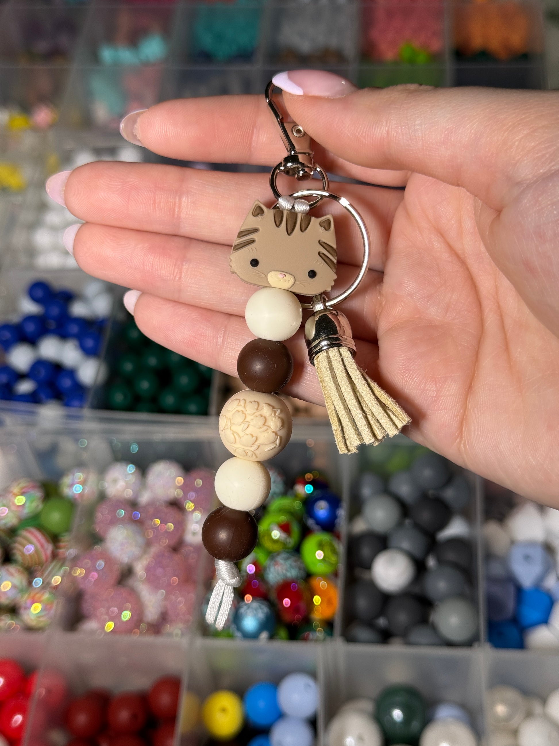 This handmade silicone bead keychain charm is a simple and decorative accessory designed to add a touch of personality to your everyday items. It features silicone beads strung vertically and finished with a metal lobster clasp for easy attachment.