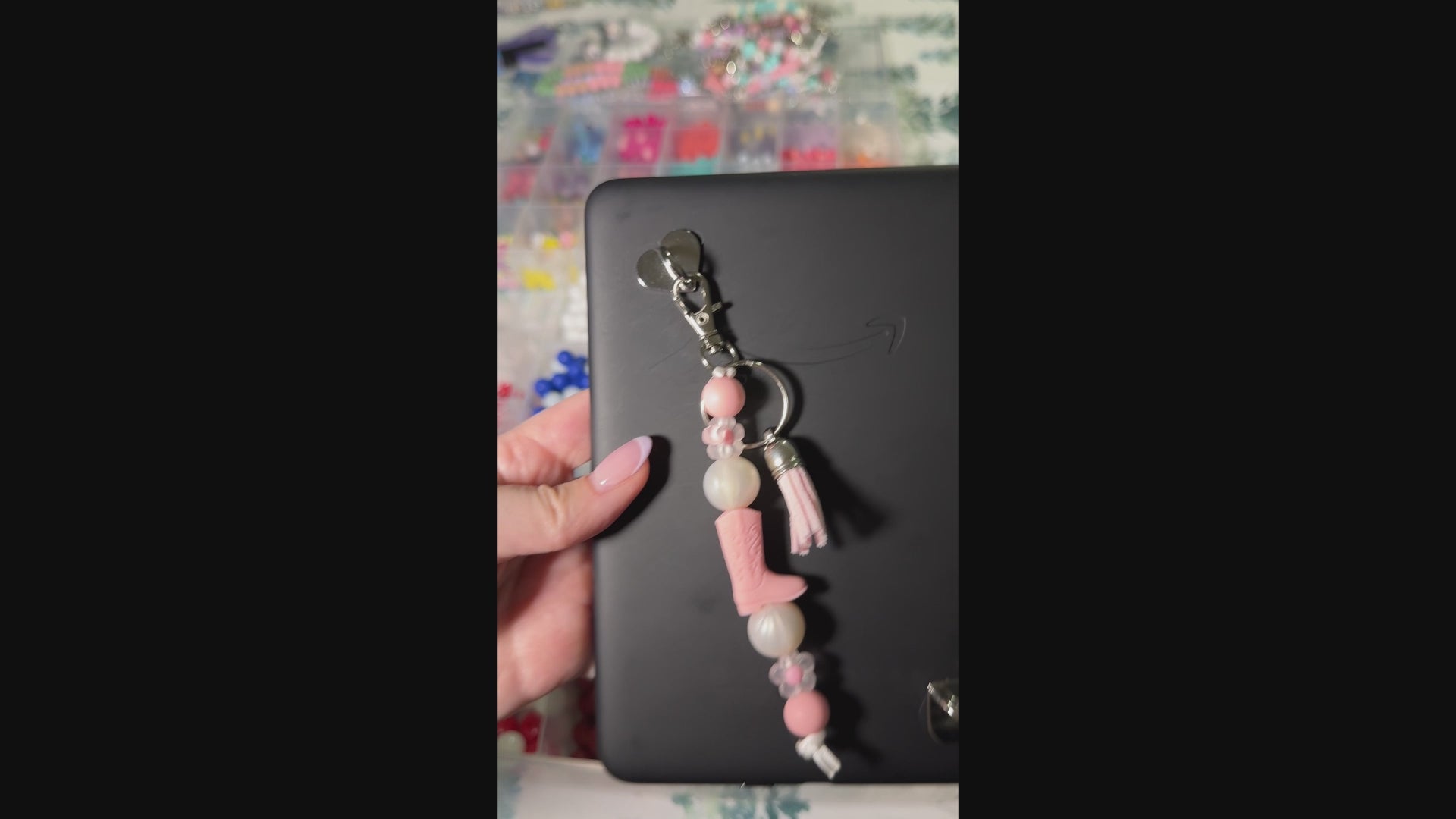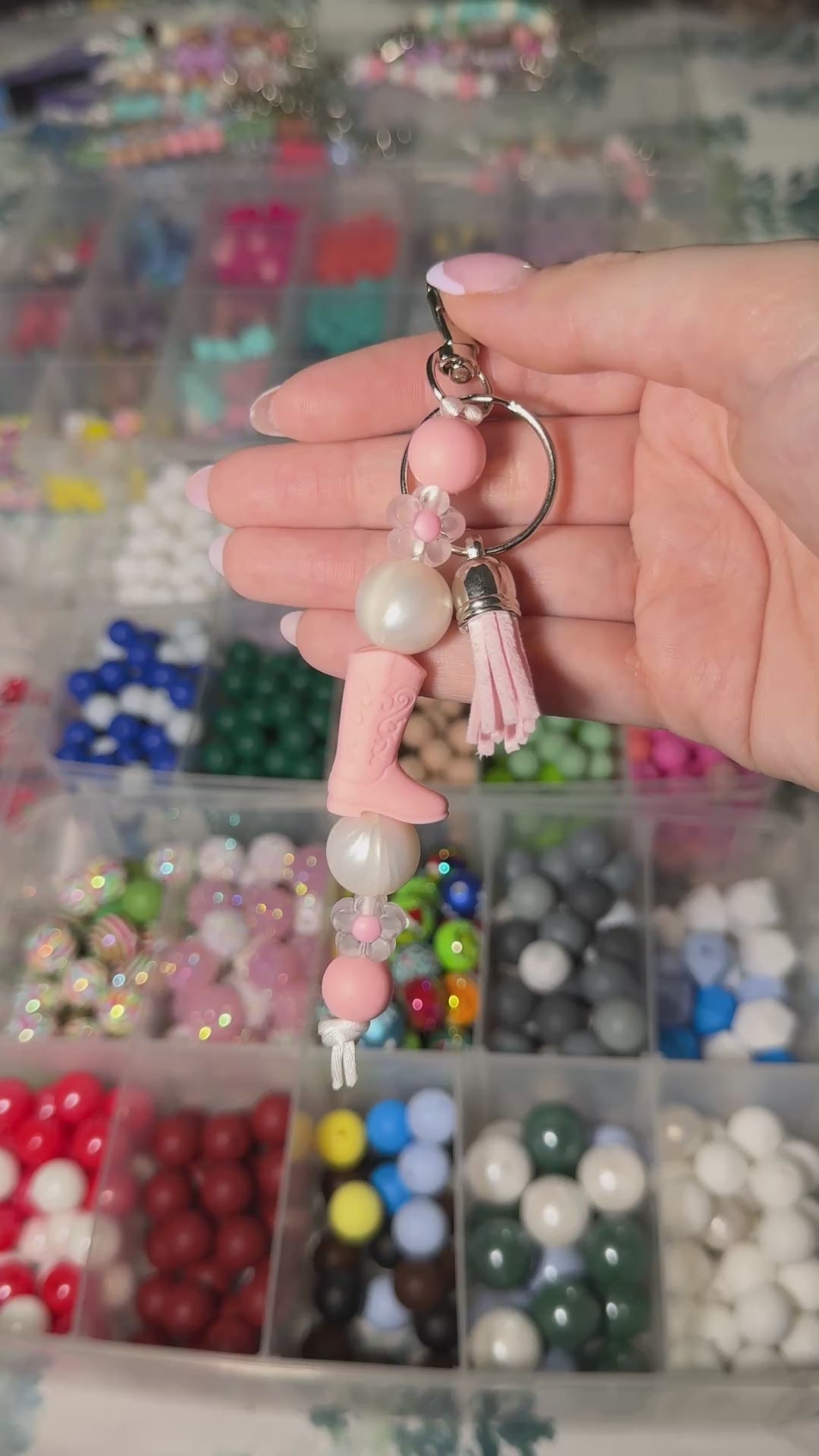 This handmade silicone bead keychain charm is a simple and decorative accessory designed to add a touch of personality to your everyday items. It features silicone beads strung vertically and finished with a metal lobster clasp for easy attachment.