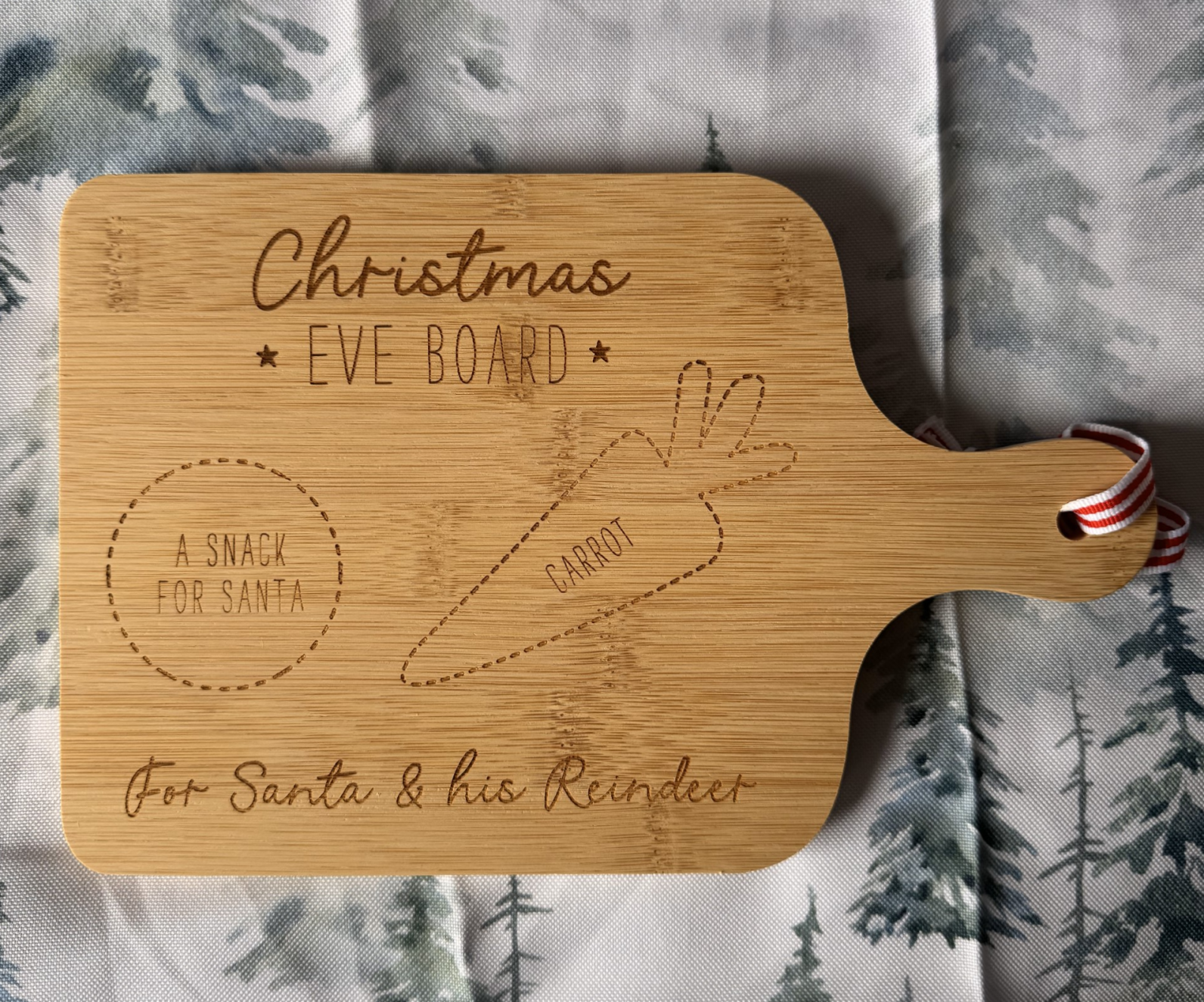 Get ready for the arrival of Santa and his reindeer with this bamboo Christmas Eve serving board. Features dedicated places for tasty reindeer snacks and Santa's cookies, making it the perfect way to add some festive cheer to your Christmas Eve traditions. Hand wash only. Do no soak